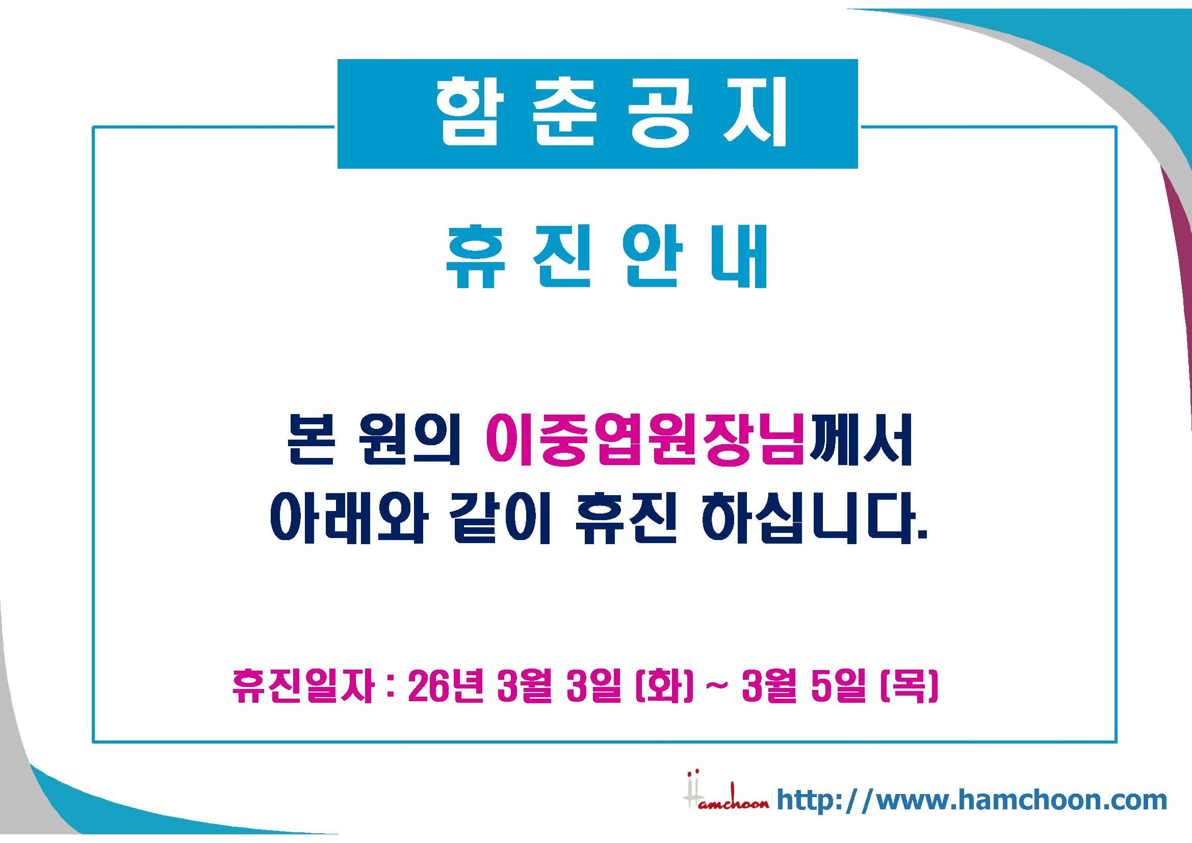 3월3일(화)~5일(목) 이중엽원장님 휴진안내